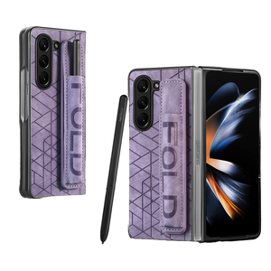 For Samsung Z Fold 6 5 4 3 Folding Screen Elastic Telescopic Leather Bag Wrist Strap with Pen Insertion Phone Case